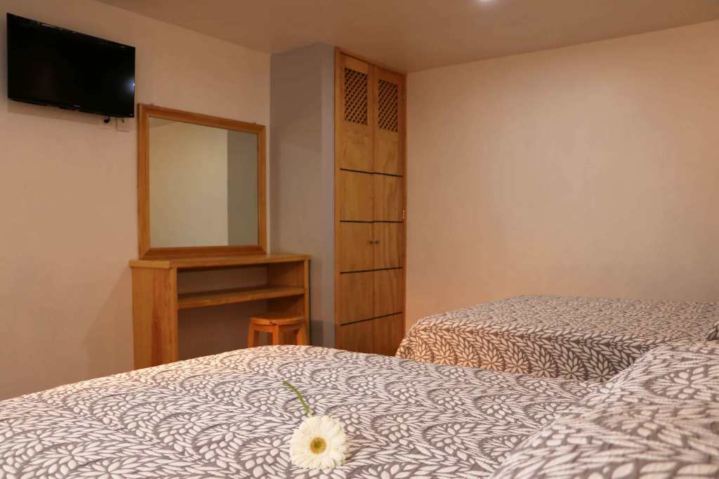 HOTEL RINCÓN DE LOS ANGELES Juárez nuestras instalaciones cuentan con habitaciones para 2, 4 personas y habitaciones familiares para 4 adultos y 2 menores en tapanco. Tenemos wifi, servicio de café de cortesía, T.V. con cable y terraza con vista al pueblo. Nuestro amable personal que con gusto lo atenderá. ¡FELIZ ESTANCIA!